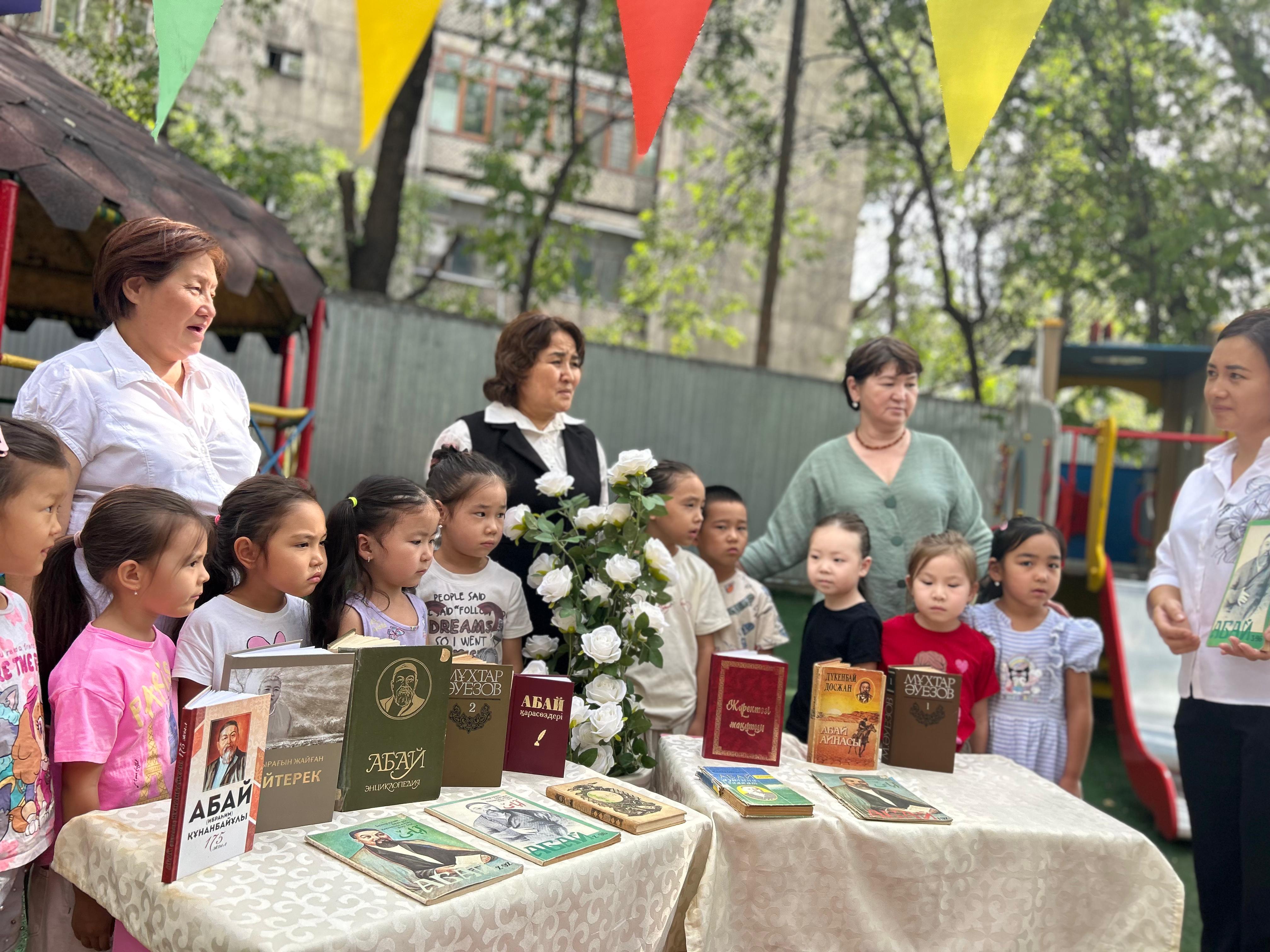 05 тамыз 2025 0 1 2 3 4 5 Ақпарат Балабақшамызда Ұлы ақын Абай Құнанбайұлының 180 жылдық мерейтойына арналған " Абай әлемі" кітап бұрышы ұйымдастырылды.Мақсаты: Бүлдіршіндерді қазақ әдебиетінің асыл мұрасымен ерте жастан таныстырып, Абай атамыздың өсиеттерін саналарына сіңіру.