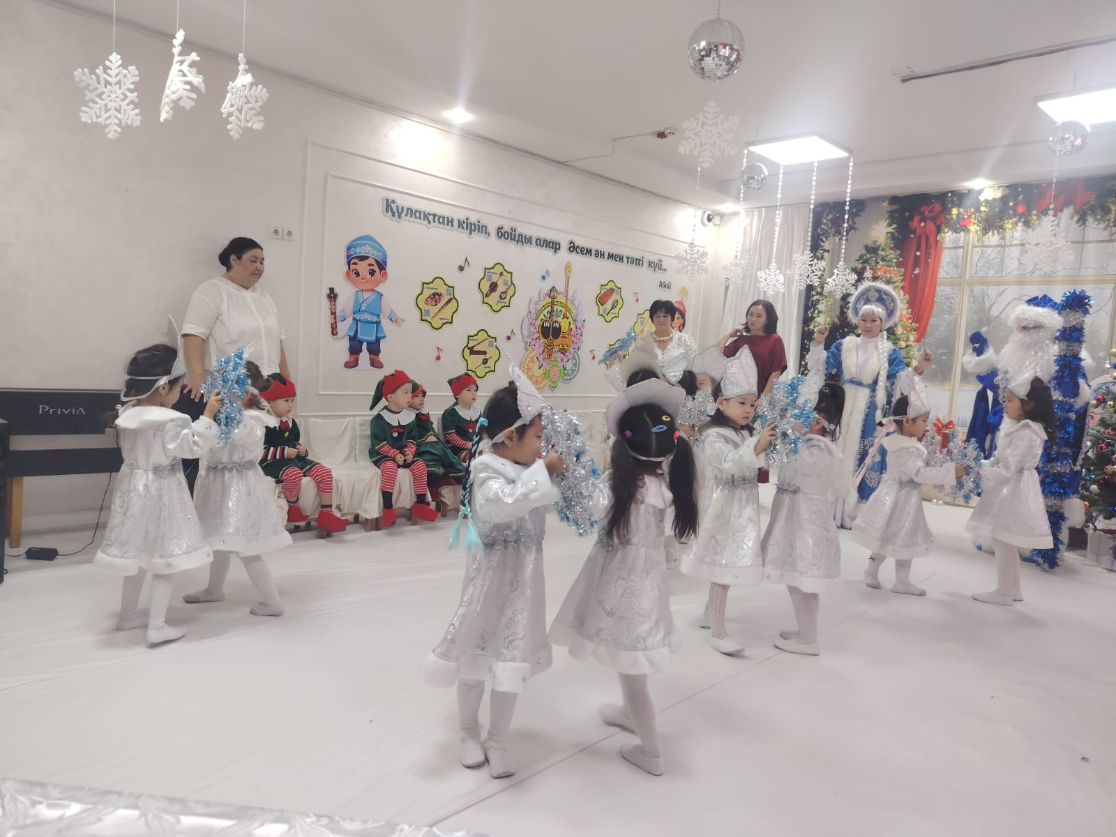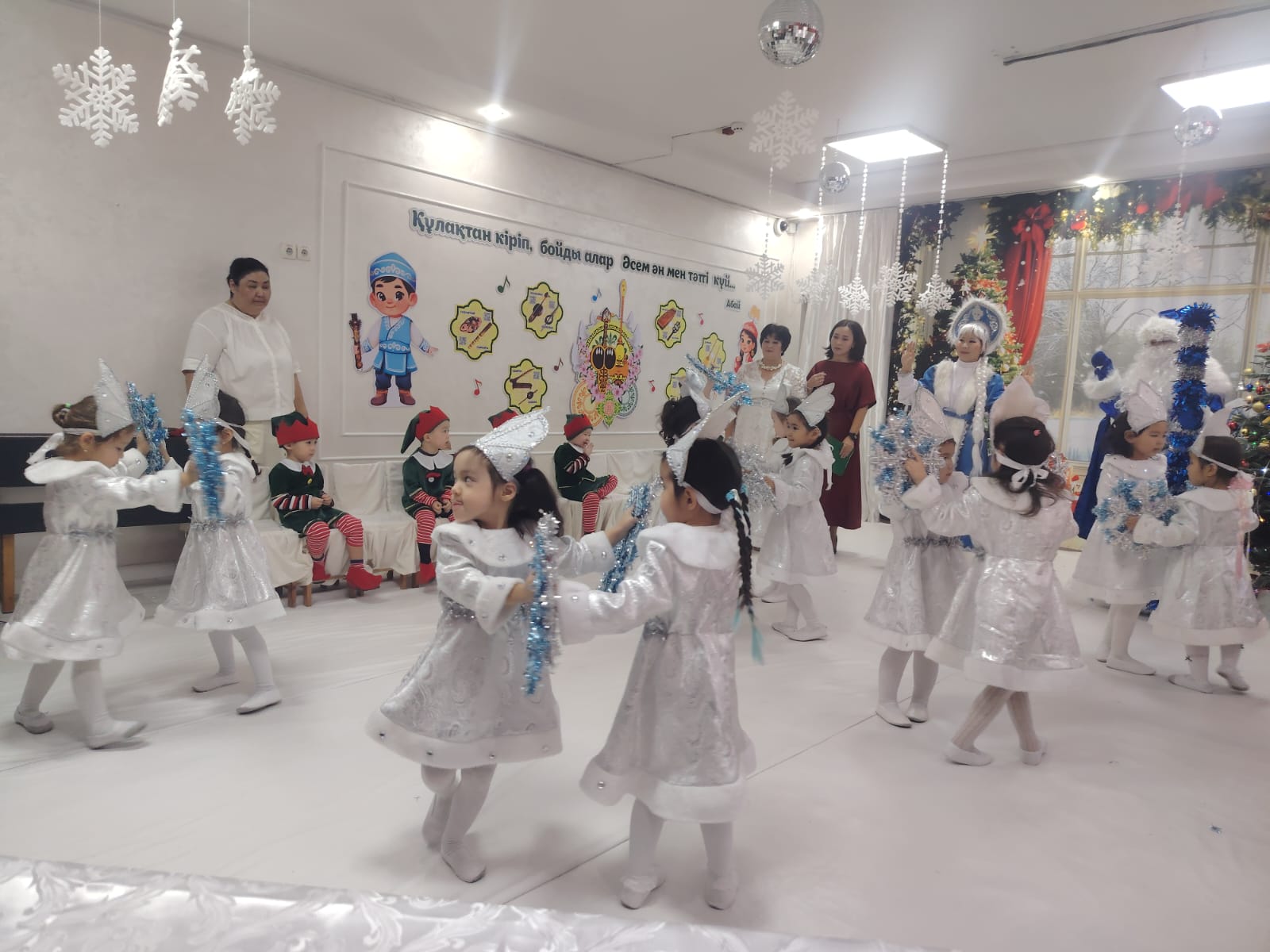 ГККП "Ясли сад №67" » Біз туралы » Ата-аналарға » "Құтты болсын, Жаңа жыл!" мерекелік ертеңгілік. Мақсаты:Балаларға мерекелік көңіл-күй сыйлау. Жаңа жыл мерекесі туралы түсініктерін арттыру. "Балауса" ересек тобы.